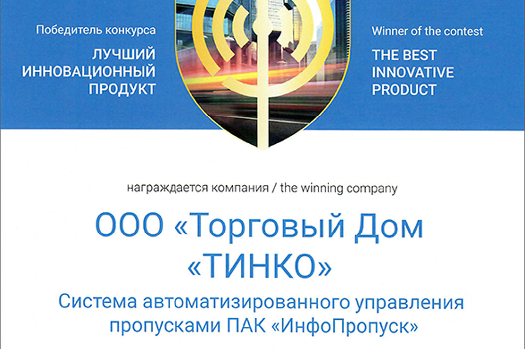 Система автоматизированного управления пропусками ПАК "ИнфоПропуск" получила награду на конкурсе «Лучший инновационный продукт» Securika Moscow-2021!