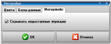 Закладка «Интерфейс» окна «Настройки» позволяет включать и отключать режим «Скрывать недоступные функции».
